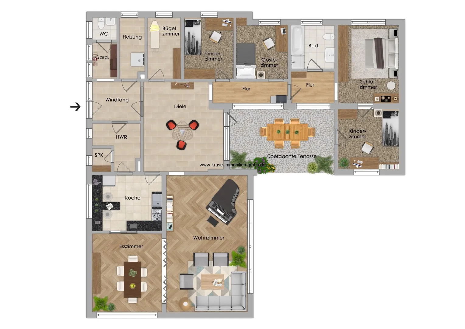 - helle und geräumige Diele mit Zugang zum überdachten Terrassenbereich