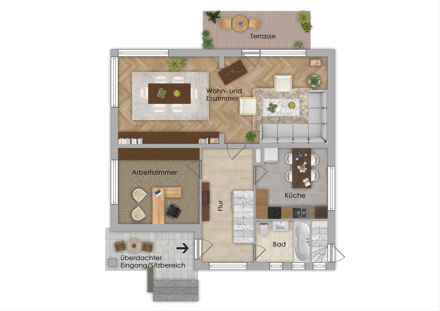 - überdachter Eingangs- bzw. Sitzbereich